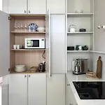 Förutom ett utrustat pentry, erbjuder den här lägenheten matplats. Busshållplatsen Niittykatu L är belägen ganska nära den här 38 m² stora lägenheten. I lägenheten Uniikki Ja Tunnelmallinen Empireasunto Haemeenlinnan Ydinkeskustassa har en terrass som vetter mot trädgården.